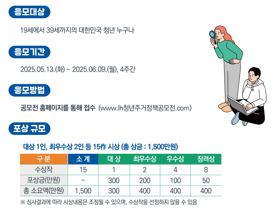 올해도 어김없이 돌아온 'LH 청년주거정책 대국민 아이디어 공모전'! 지원 자격부터 접수 방법, 수상 혜택까지 핵심 정보를 한눈에 정리해드립니다.